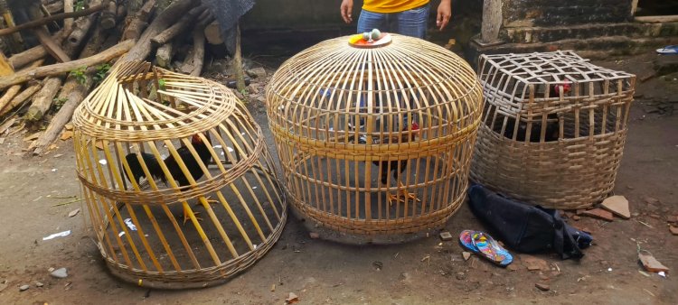 Arena sabung ayam lengkap dengan perlengkapan pendukung, Sangkar ayam dan ayam jago, 9 unit sepeda motor yang ditinggalkan oleh para pelaku.