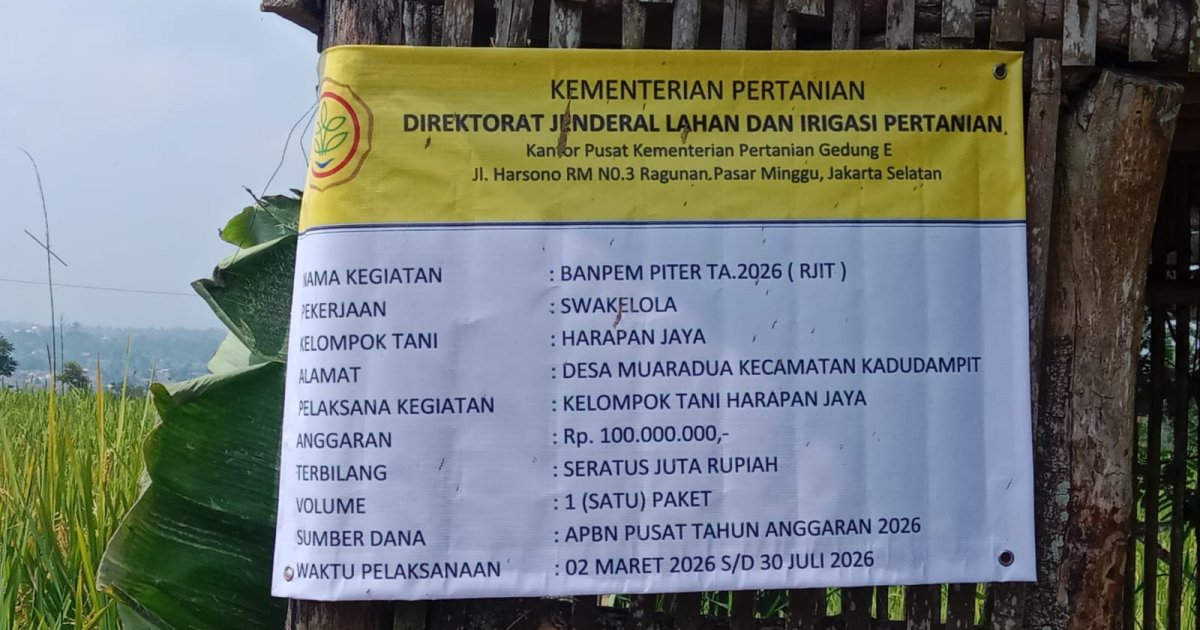 Proyek yang dimulai sejak 2 Maret 2026 ini ditargetkan rampung pada akhir Juli mendatang. Dengan adanya perbaikan infrastruktur ini, Kelompok Tani Harapan Jaya optimis produktivitas padi di wilayah Kecamatan Kadudampit akan semakin meningkat dan mendukung ketahanan pangan nasional.
